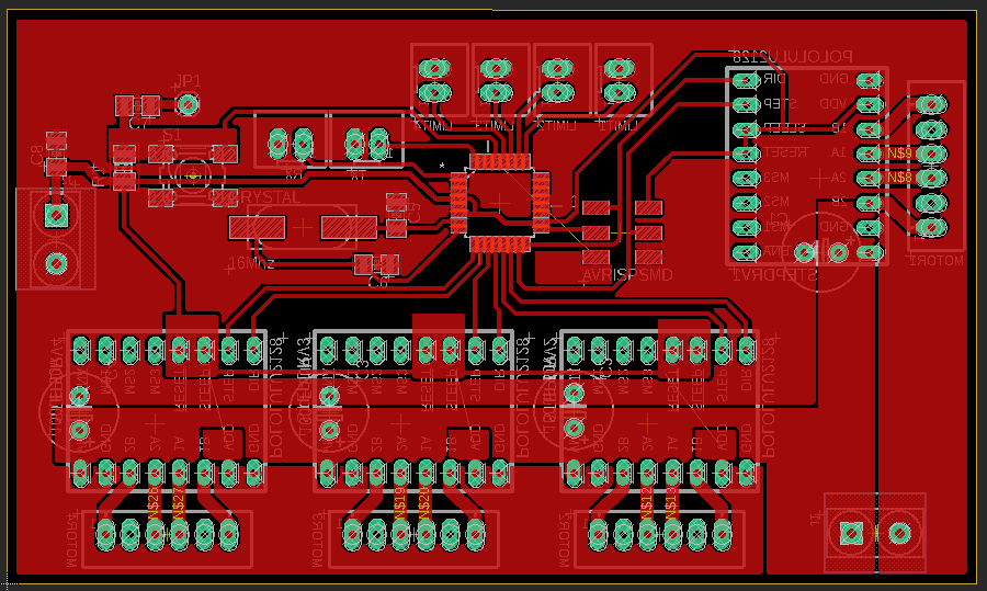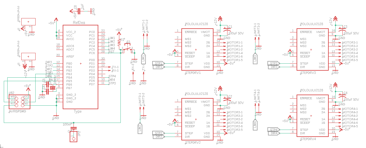 The schematic is simple. I used Atmega328 IC and connected 4 stepper motor drivers, 4 limit switches to it with other necessary components.