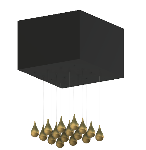 - Each symmetrical element is composed of 608 copper-plated aluminium drops.