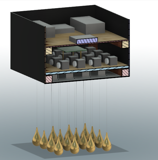 - The drops are connected by steel wires to computer-controlled motors that raise and lower them with precision.
