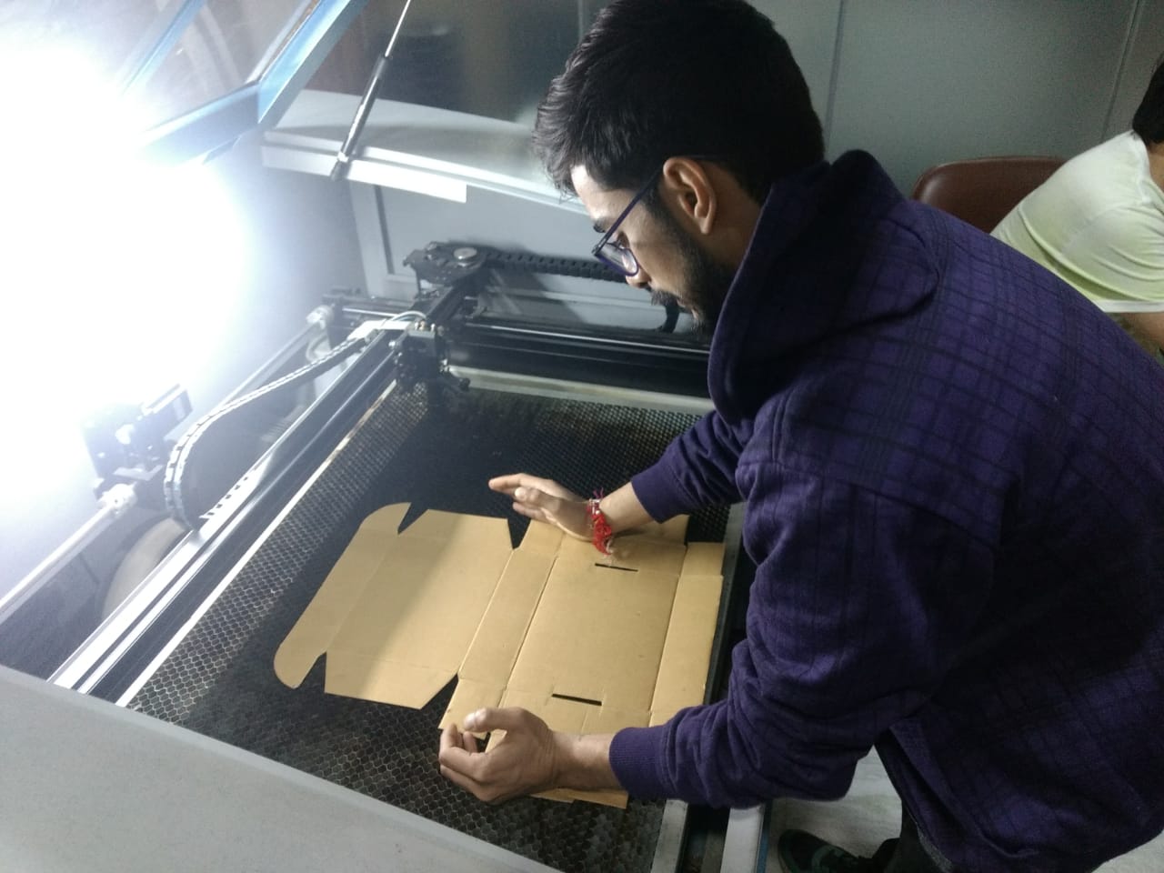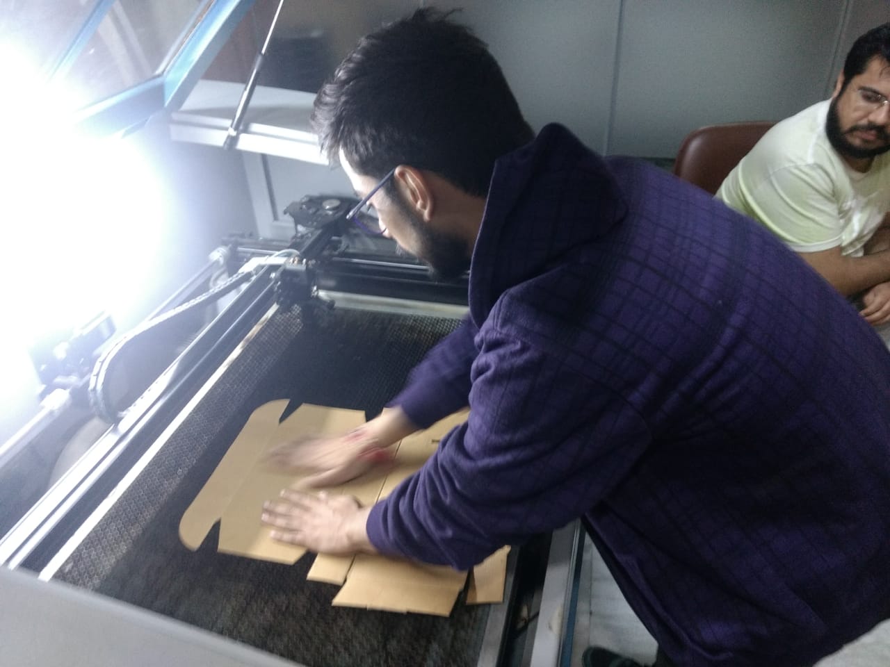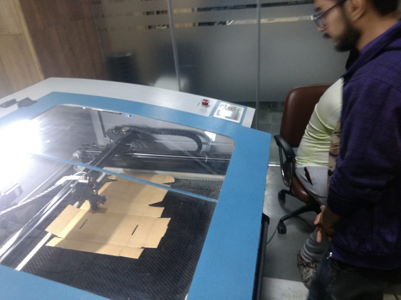 We used the laser machine from the brand SIL. It is widely used CO2 laser cutting machine and used it to perform several tests. The test files were arranged by our co mate Ashish Sawhney. These tests were done to learn how to work with the laser effectively and optimum usage of material.