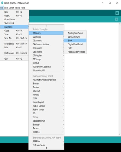 Go to File > Examples > Basics > Blink to test out if the LED works in your circuit.