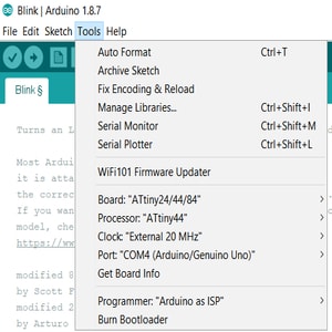 In order to program the board, I used an arduino and the software Arduino to program it. First of all, we need to install the attiny44 in the arduino software. I followed this tutorial to help me do that. These are the steps I did.