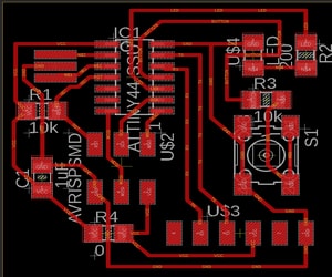 - Redraw the echo hello-world board. Add (at least) a button and LED (with current-limiting resistor), check the design rules, make it, and test it. Extra credit: simulate its operation.
