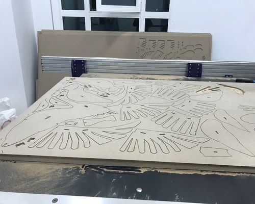The material used for CNC is High Density Fibreboard (HDF) and the thickness I used for my bird was 8 mm. Before cutting, we caliberated the machine to set the X,Y,Z origins.