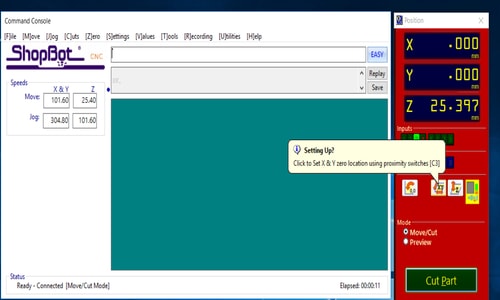 We set the origins of the machine by using the program. This was to set X and Y origins.