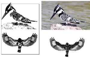 To start of this week, the students of FabLab Bahrain participated in an opening of an exhibition which involves showcasing different types of birds found in Bahrain. Therefore, we thought of producing these birds using the CNC machine. Each of us will have to choose a bird and design a 2D sketch of it, to produce a 3D model and cut it in the CNC machine. We visited the Bird of Bahrain website, which includes all the lists of migrated and non-migrated Bahraini birds, and from here, we get to choose one bird and model it. The bird I chose was the ‘Pied Kingfisher’. Here are some images of it: