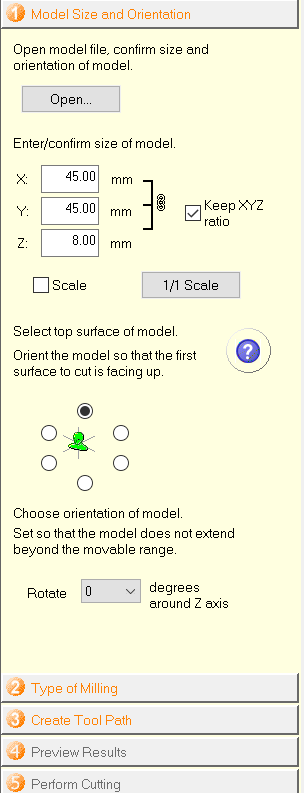 After I have exported the file from tinkercad to stl form, I opened it in the Roland SRP player software in which I will prepare the file for milling. Below are the settings used.