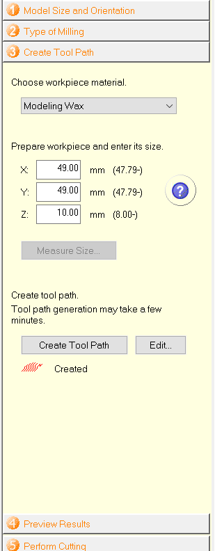 I entered the dimensions of the area of which I wanted my model to cut.