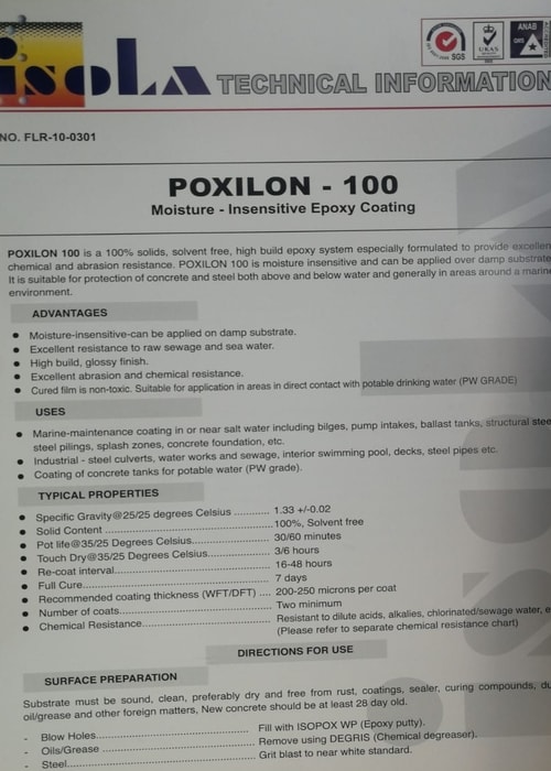 The images below shows the safety data sheet of the epoxy.