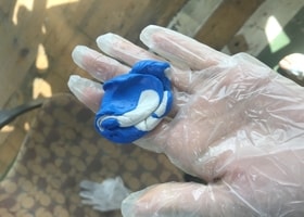 Take a decent amount of the two silicons, catalyst (blue) and base (white), that would be enough for the model. Weigh each of them separately and ensure they are at equal amounts. Here is a link to the safety datasheet.