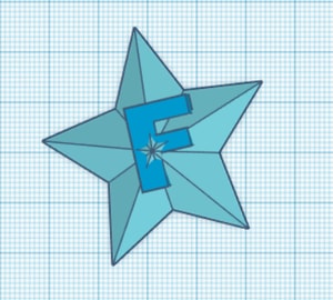 I placed a star with the letter F in the middle and the completion of the star on the top of the letter. I then just placed a hole in the star to create something like a keychain in order to hang the model. After finishing, I exported it as stl file. Here is a link to my design and below are the steps shown of how I did the design.