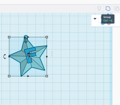 I then grouped the 3 shapes together by holding the ‘shift’ button and selecting the objects one at a time, or right click and drag the pointer on the model and all 3 shapes get selected at once. After selecting, click on the group/ungroup icon placed at the top as shown in the image.