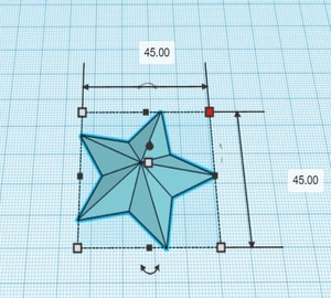 I then clicked on the object and moved my cursor to any of the four corners, where the dimension lines appeared. I clicked on the numbers and changed by dimensions to 45 mm as shown. You can also use the arrow at the bottom centre of the object to help you in rotating the model.