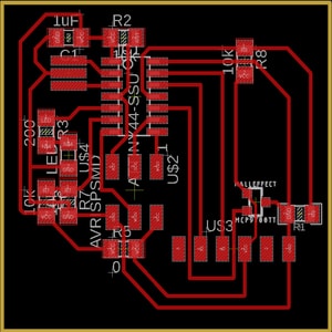 Go to File>Switch to board to start with the pcb design. I adjusted the components and created the routing and below will be the final pcb design.