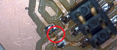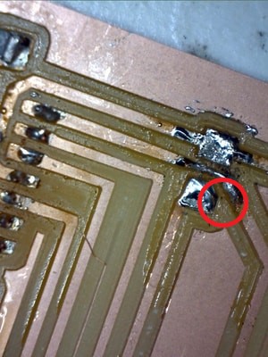 Here I accidently removed the copper track while trying to disconnect the other traces from each other, so I connected them with solder.