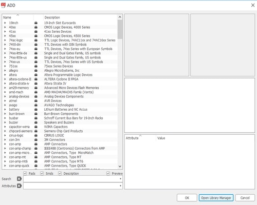 Click on add part from the toolbar, then click on open library manager.