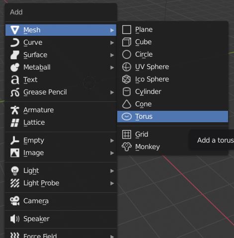 1- First, I have deleted the cube object and place a cylinder by clicking on Add > Mesh > Torus.