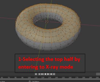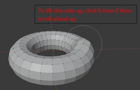 3- Then, I clicked on “Tab” key on my keyboard to enter to the edit mode. Then, I pressed O to enable the proportional editing. Then, I have move the dots up and down to make the doughnut little lumpy because no doughnut is prefect in shape!