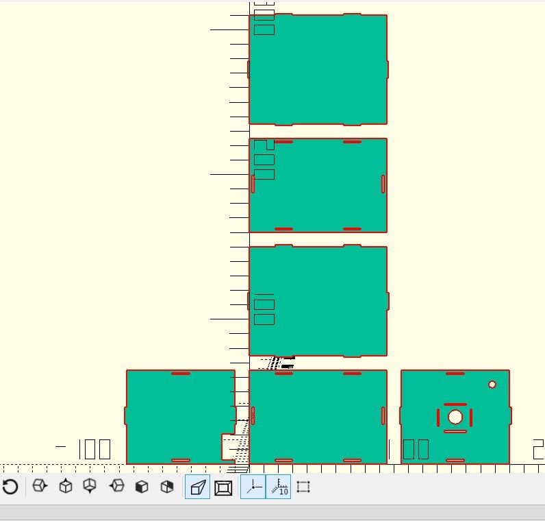 - Secondly, I built the 6 sides of the box using square() command and I started adding parts to it and cutting parts from it using difference() & union() commands.