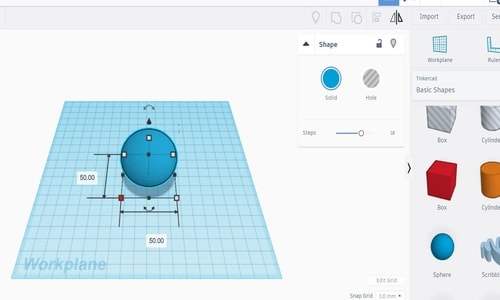 I was planning to draw a snowman, so the first thing that I have done is drag and drop a sphere with the following dimensions: