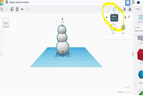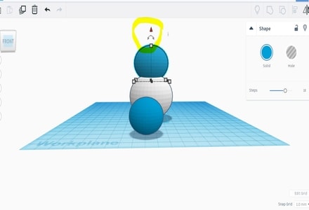 Then, I put the spheres on each others by place them on the center of the first sphere and pull the arrow up
