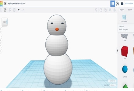 After that, I have added the snowman nose and eyes by adding the cone shape and cylinder