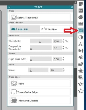 5- Click on Select Trace Area and draw a square around your object.