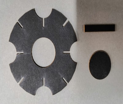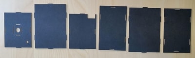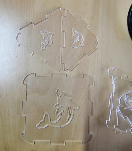 I have cut the pieces of the press fit kit using the laser cutter in the same way that I have cut the box. I have followed exactly the same steps. Here are the pieces after cutting