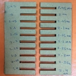 As a part of the group assigment, I have worked on and designed a comb for the matboard material. The purpose of this comb is check different sizes and see the best size that fit the materail. So, the first step I did is measuring the thickness of the matboard and I found it 2mm. Then, within openSCAD, I have designed the comb with different teeth sizes, starting from 1.95 mm to 2.40 mm with intervals of 0.05 mm. Here is the design as well as the code of it.