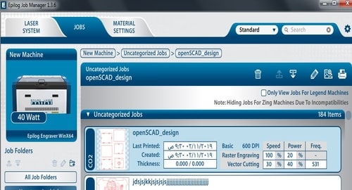 12- Finally, after you finish, in the epilog software, you will see that your file is added to the jobs and it will be appeared in the machine screen as well.