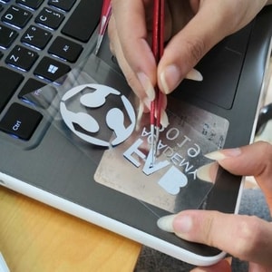 2- Second, place your sticker on the vinyl sheet to ensure that all parts will be sticked excatly at the same place.
