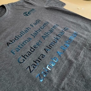 I also worked with my colleagues on a t-shirt. We designed a t-shirt with the fab academy logo and our names. I wrote our names in the Silhouette studio and worked on the logo. I was the one who was dealing with the software side and everyone else had different task. At the end we successfully made our t-shirt. Here are some pictures.