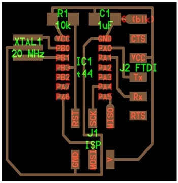 To milling my PCB, I have followed exactly the same steps of week 5 but this time I had to create the circuit traces and outline images by myself. So, here is what I did: