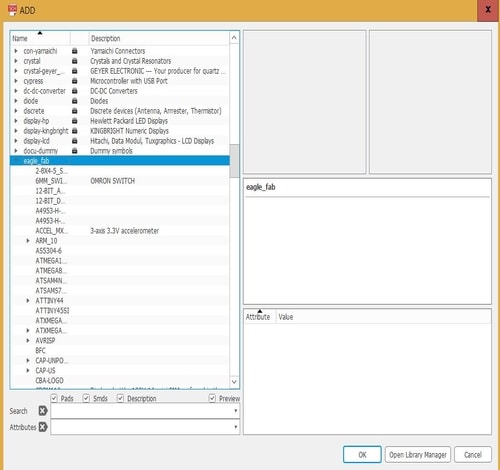 1- Firstly, I have installed the fab library from this link. I have installed it in the same path of the Eagle libraries folder.