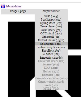 2- Next, from the output format window, I have selected the Roland mill as this is the machine we are using.