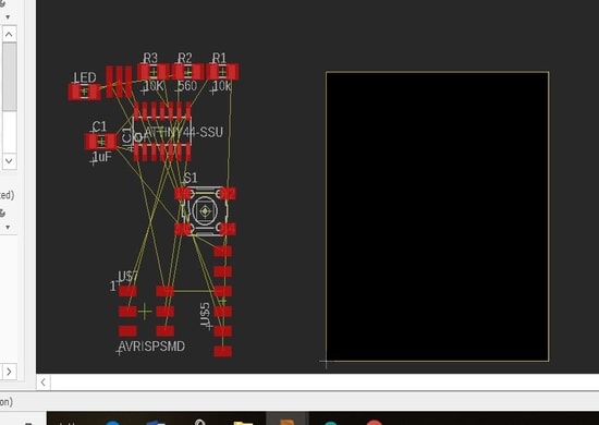 4- Start drag and drop the electronics components on your board (the black area). Organize the layout of the components, rotate them and keep what is connected to each other next to each other to make the routing easier later on.