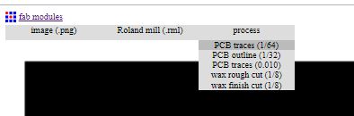 3- Next, from the process window, I have selected the PCB traces 1/64 as for milling the traces of the PCB we are using the drill bit 1/64.