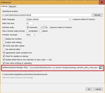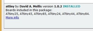 1- Firstly, I have installed the ATTINY44 library following this tutorial.