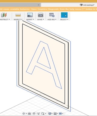 When I used Fusion 360, I was planning to extrude each rectangle in a different height (For example, to extrude the frame and the letter “A” with the same height, but the base (the part behind the letter) will be a bit lower). Unfortunately, I was not able to do that in the software and I end up with having float parts.