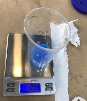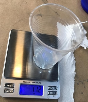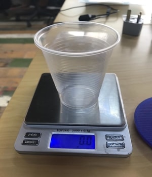 1- I started by placing an empty plastic cup on a balance and zero it.