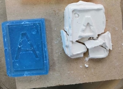 For casting I have tried to use gypsum. Unfortunately, because the ratio of the gypsum and water was not correct, my medal broken.