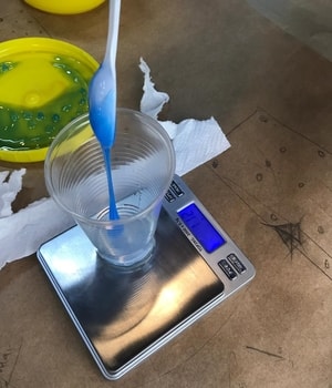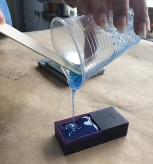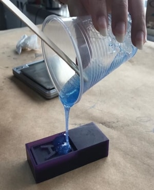 4- Then, I moved to the next silicon which is the blue one (catalyst). To create the mold, the amout of catalyst must be equal to the amout of base. They should have the same percentage (1:1 mix ratio).