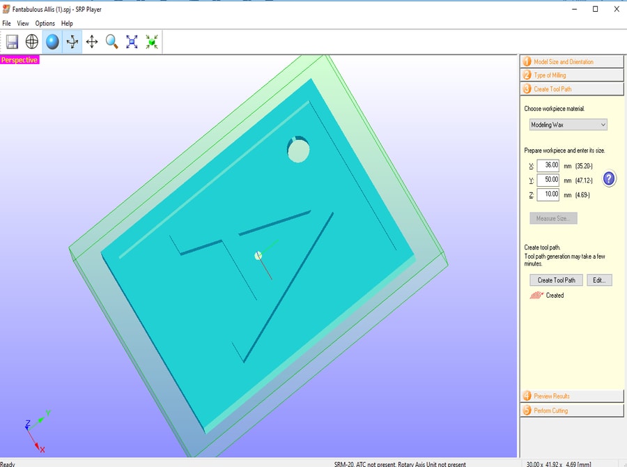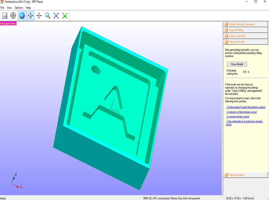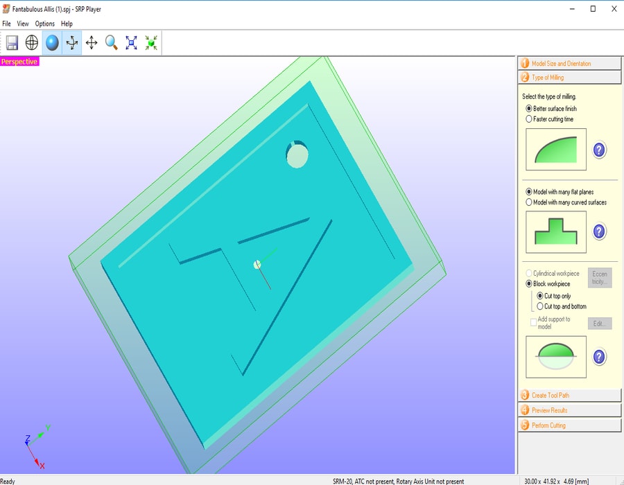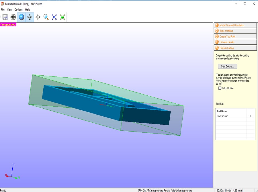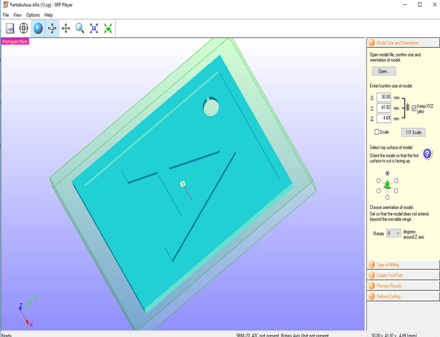 Moving to the milling stage, I have used Roland SRP Player to prepare the file for milling using the following steps: