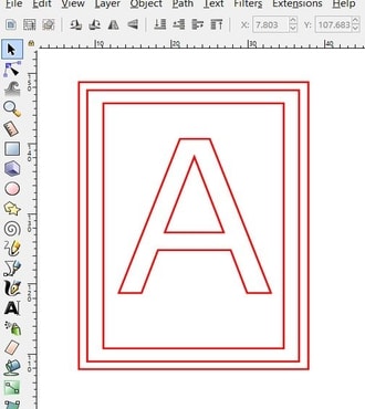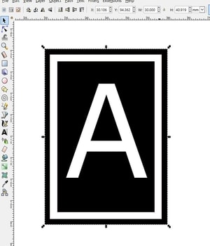1- Using Inkscape, I have drawn 3 rectangles (Black, white and black again). Then, I created a text object with the letter “A”.