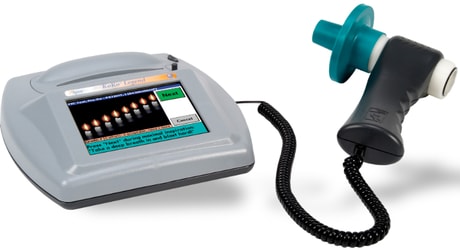 One of the standard tests conducted in hospitals to measure the pulmonary functions is called the spirometry test. Spirometry test assess how well the human lungs are by using a device called spirometer. The spirometer measures the amount of air that patient can inhale and exhale during the respiratory system as well as the flow rate. The test is very safe and painless, it takes approximately 10 minutes to be completed.
