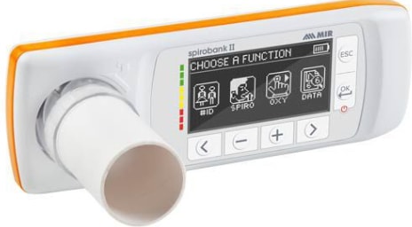 In this project I are intrested to measure some certain parameters in spirometry test such as FEV, FVC and MVV. From the results of those parameters, doctors can identify the type of the lung disease. Based on the results as well, doctors can set the suitable training sessions for patients. Spirometer is considered as a significant medical tool that is used to keep human lungs healthy. Currently, there are many types of spirometer available in the market with different designs, sizes and prices. They are also available in the online stores such as Amazon and Ebay. The figures below shows different types of spirometers: