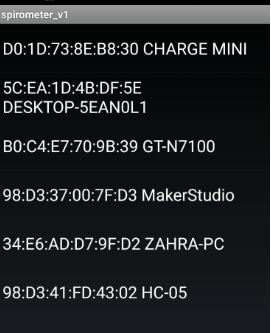 To connect the mobile app to the bluetooth module, I have clicked on the Bluetooth icon, then from the list I have chosen the HC-05