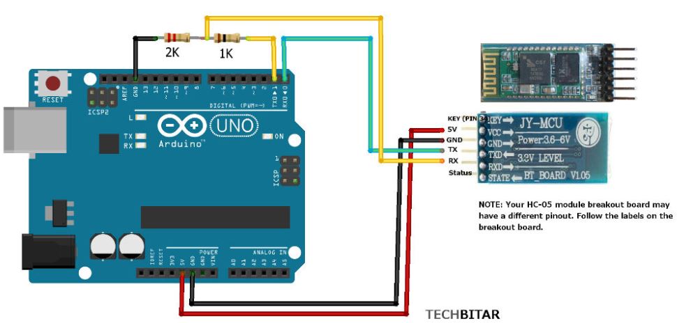 The ciruit below show how the bluetooth module should be connected to a micro-controller ATMEGA328P: