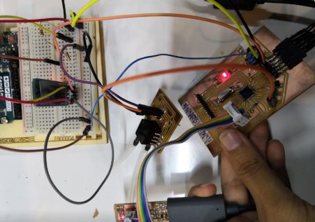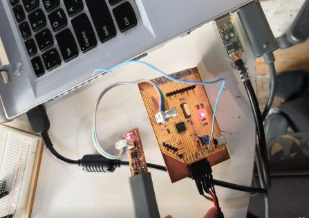 The first step taken is connecting the micro-controller board into my PC using my own programmer and the FTDI cable. By this connection I was able to program the board and upload the code.