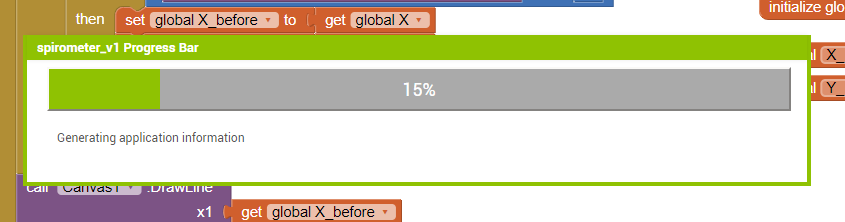 4- Then, moving to the blocks, I have initialize variables for X and Y and the canvas block to control the graph. Here is the edited block daigram.